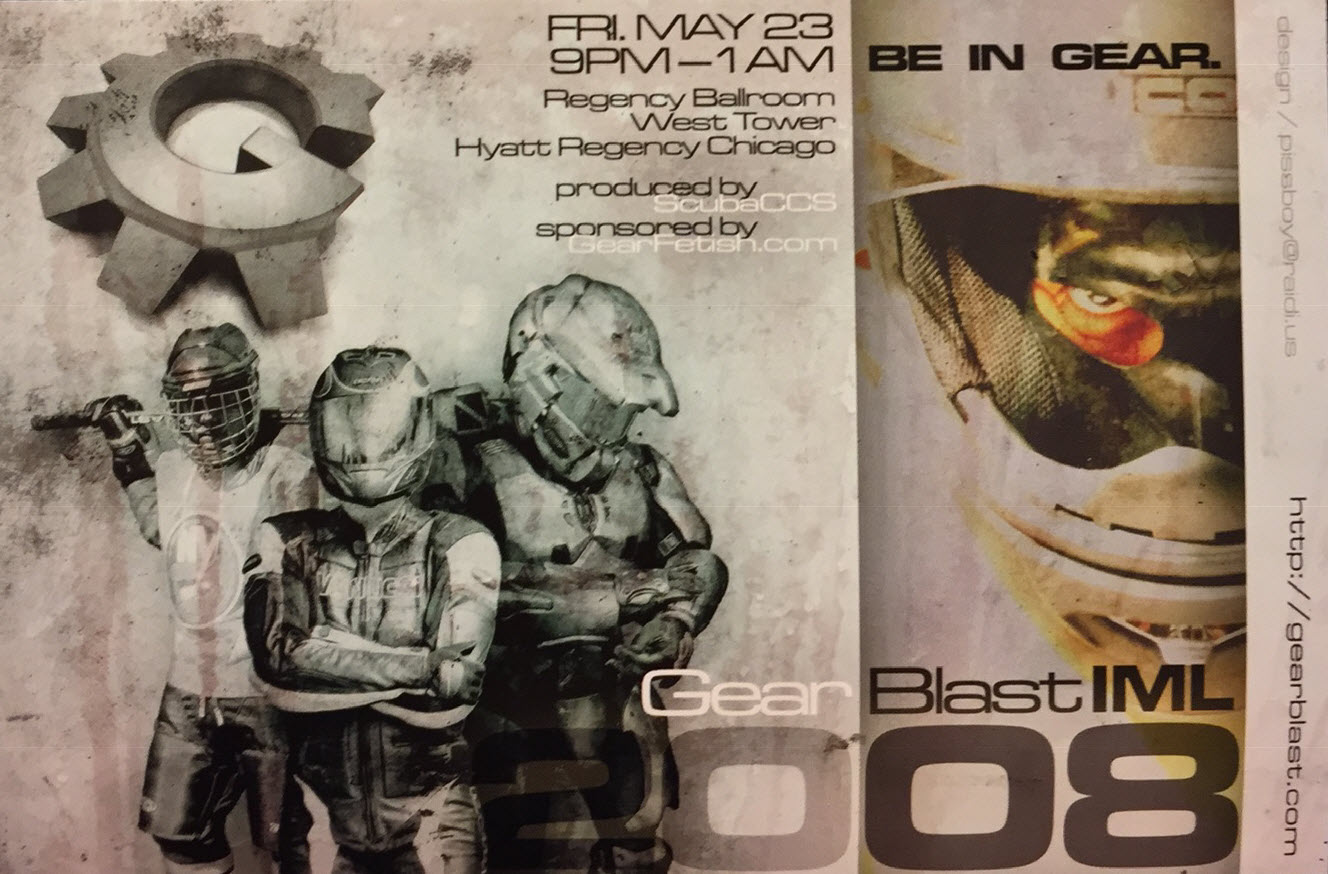 Here is a picture of a postcard that was handed out at International Mr. Leather XXX (2008). It promotes both the original GearFetish.com and the first ever GearBlast party!